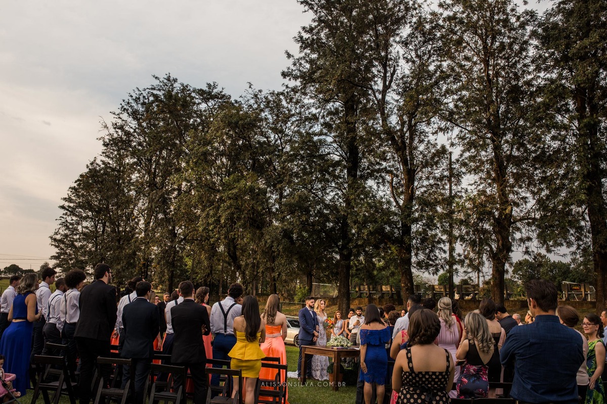 O casamento de Taisy e Filipe foi logo ali em Medianeira, no Paraná, cidade natal dela e onde eles vivem. Mas a distância do Espírito Santo, terra do noivo, não foi problema pra galera não, que compareceu em peso no casório.